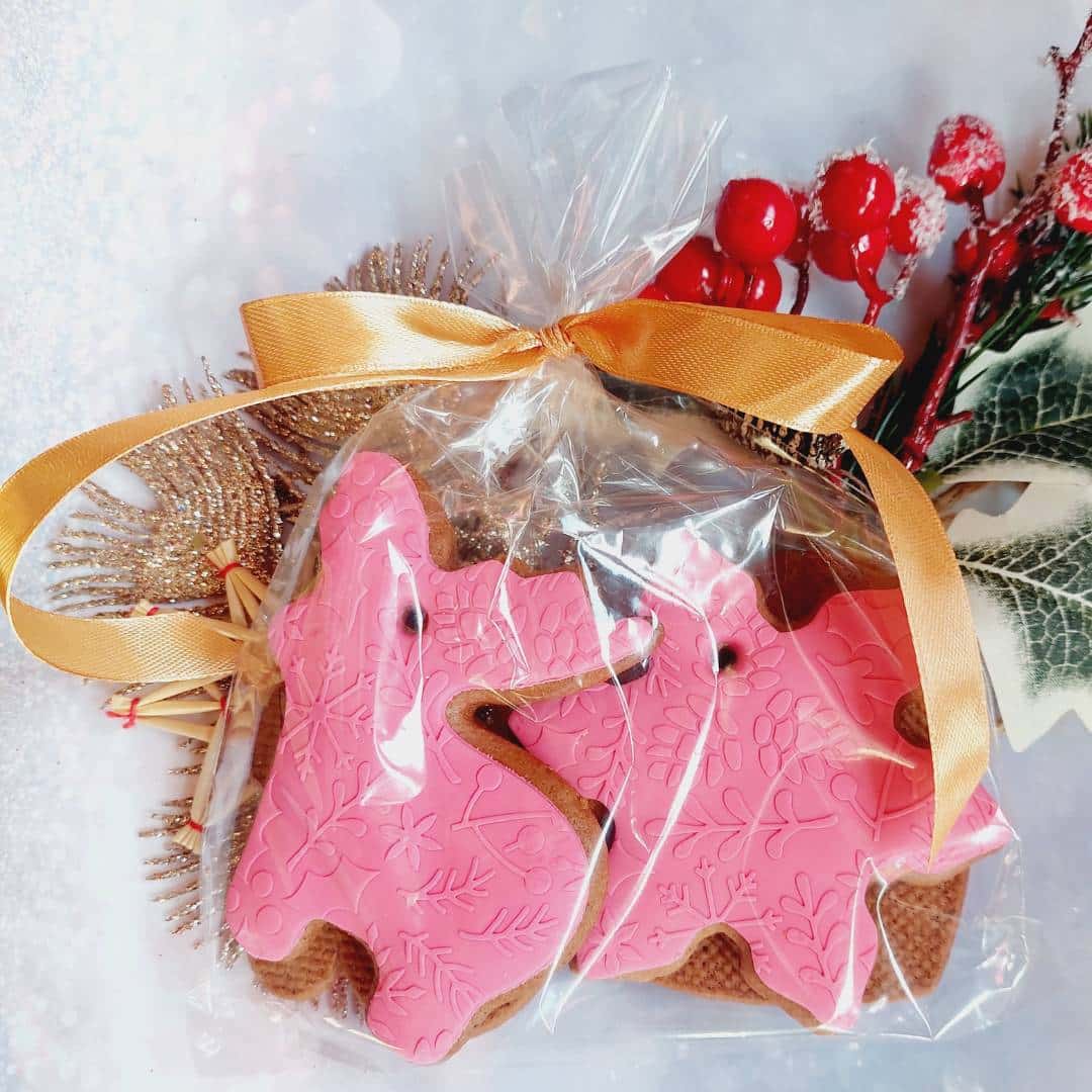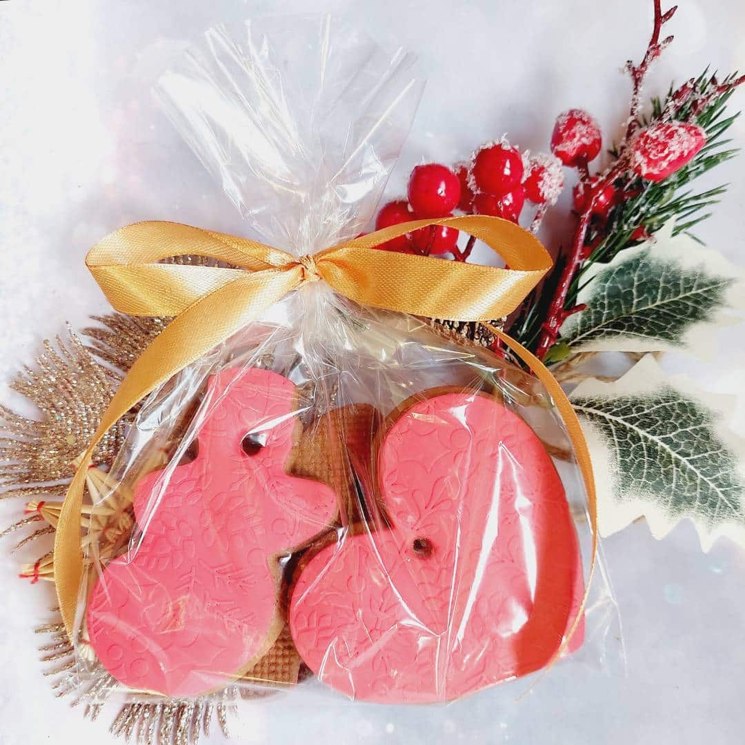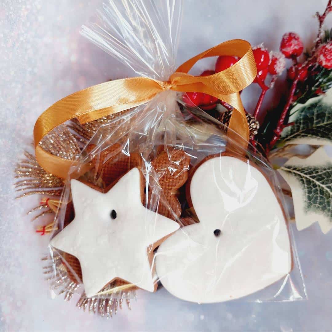 Pierniczki zapakowany w woreczek z wstążką.